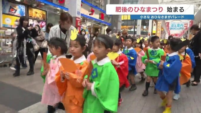 3月3日のひな祭りを前に、熊本市の中心市街地では、かわいらしい「お内裏様とお雛様」が商店街をパレードしました。