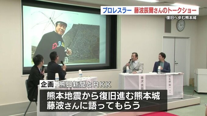 プロレスラー・藤波辰爾さんがトークショー「ドラゴン 熊本城を語る」 熊本・中央区 2026年2月28日(土) 16:14 国内 熊本地震から10年を前にトークショーが熊本市で開かれ、プロレスラーの藤波辰爾さんが熊本城をテーマに語りました。登場したのは城好きで知られるプロレスラー、藤波辰爾さん(72)です。藤波辰爾さん「僕はね、石垣…