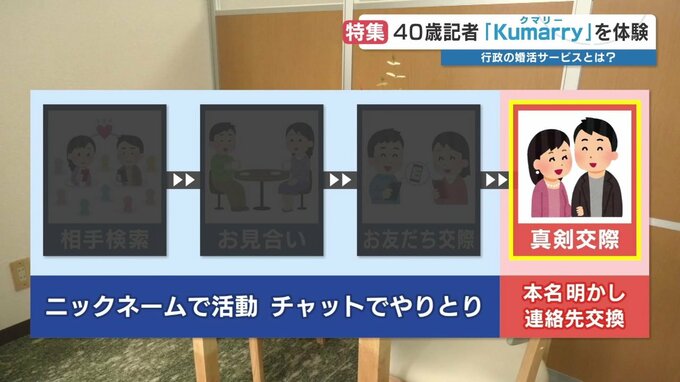 「Kumarry」はニックネームで活動し、マッチングしたら「お見合い」へと進みます。