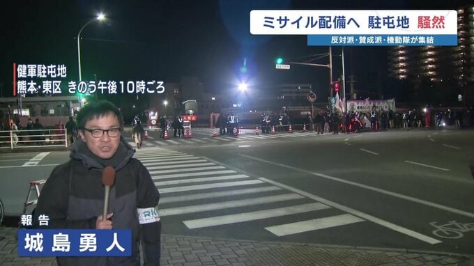 8日夜、健軍駐屯地の正門前には「発射機が搬入される」という報道を受け、賛成派、反対派の双方が集まり、怒号が飛び交うなど騒然としました。