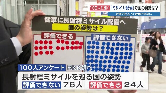 〝長射程ミサイル配備〟国の姿勢 評価できる?できない? 熊本市で100人に聞きました 2026年3月10日(火) 18:38 国内 記者「健軍への長射程ミサイル配備に関して、国の姿勢を評価しますか、しませんか」80代「説明が今一つないでしょ。県民、市民がないがしろにされている気がする」50代「木村知事が『全然説明(連絡)ないまま』と…