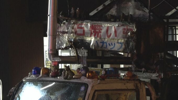 消防によりますと、火が出たのは70代の男性が運転する焼き芋の移動販売のトラックで、火は約1時間後に消し止められましたがトラック1台が全焼しました。