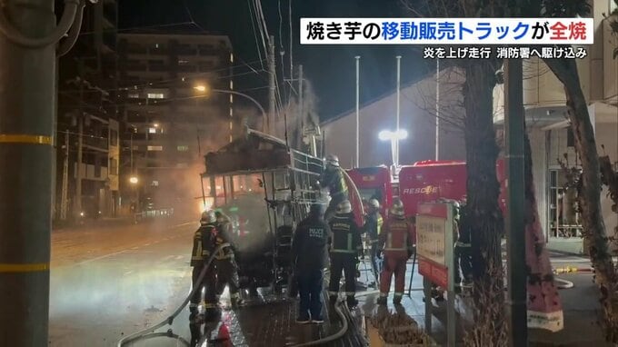 トラックは派手な装飾を施した焼き芋の移動販売車で、荷台から煙が出ていることに気づいた男性が、熊本市中心部から国道3号を通って、最寄りの熊本市中央区の西消防署に向かいました。