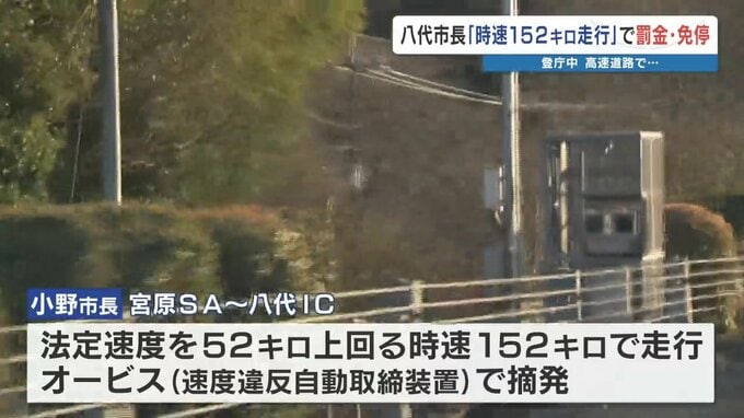 その際、九州自動車道の下り線、宮原サービスエリアから八代インターチェンジの間を 、法定速度を52キロ上回る、時速152キロで走行し、オービス(速度違反自動取締装置)によって摘発されました。