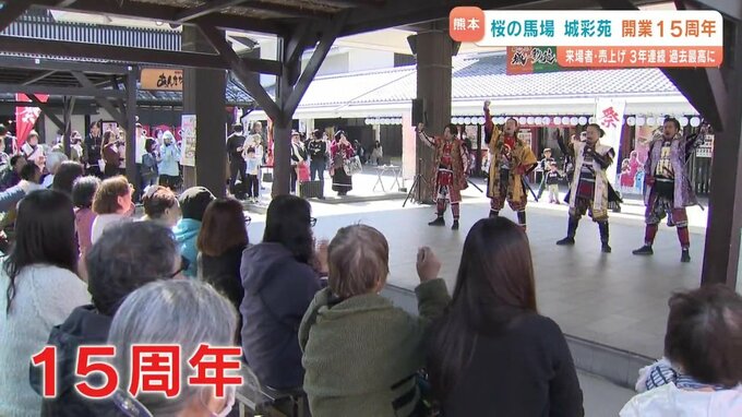 インバウンド増加で来場者・売上げ 3年連続過去最高に 桜の馬場城彩苑15周年 2026年3月15日(日) 17:11 国内 15日、熊本城のそばにある桜の馬場城彩苑が開業から15周年を迎え 一帯ではイベントが開かれました。2011年の3月にオープンした桜の馬場城彩苑は今年で15周年を迎えました。イベントでは、熊本城おもてなし武将隊の…