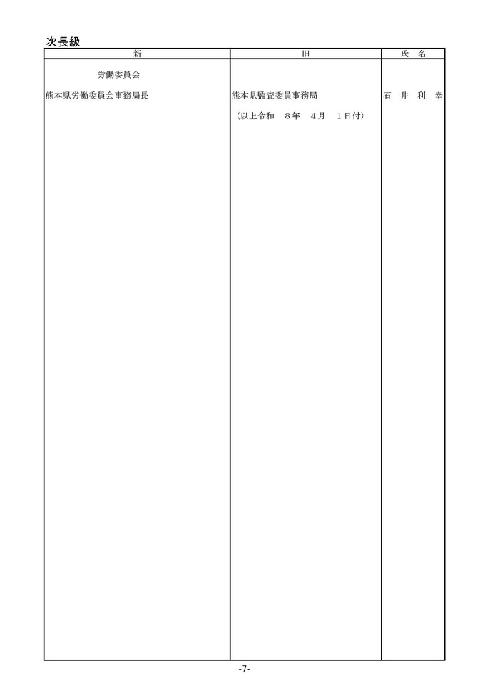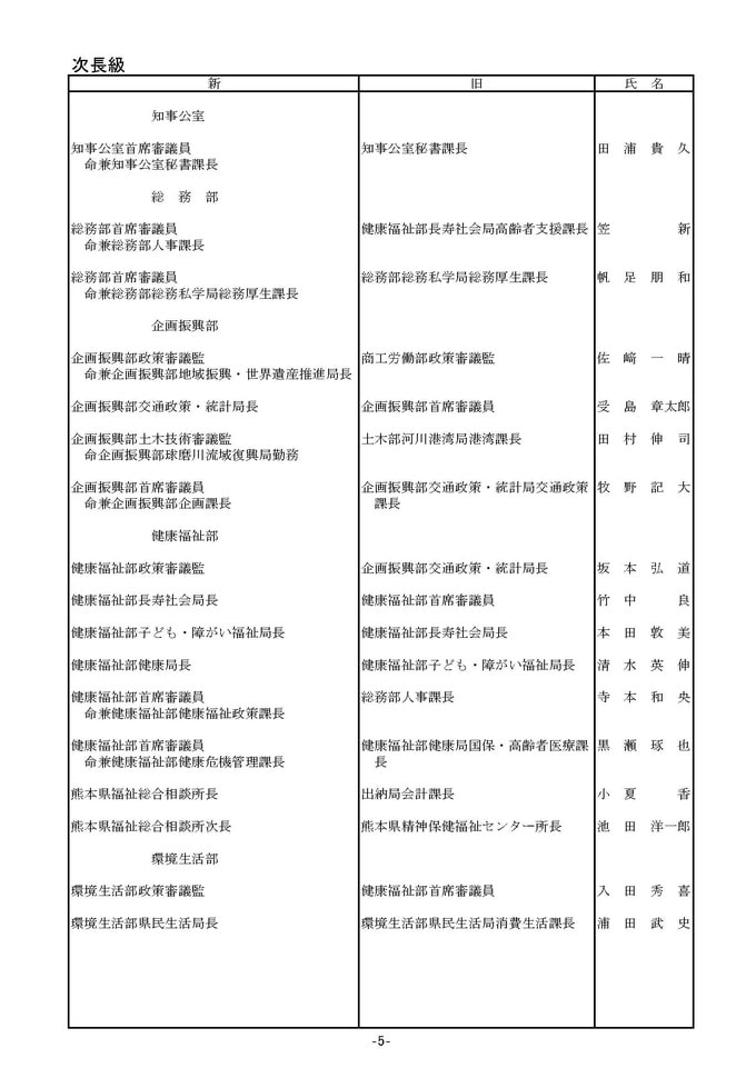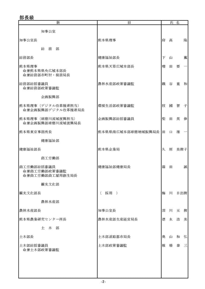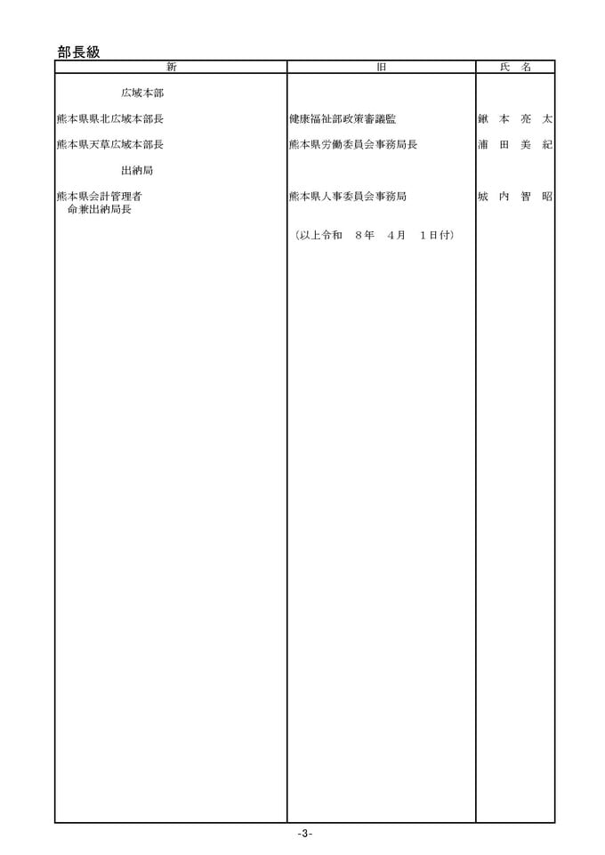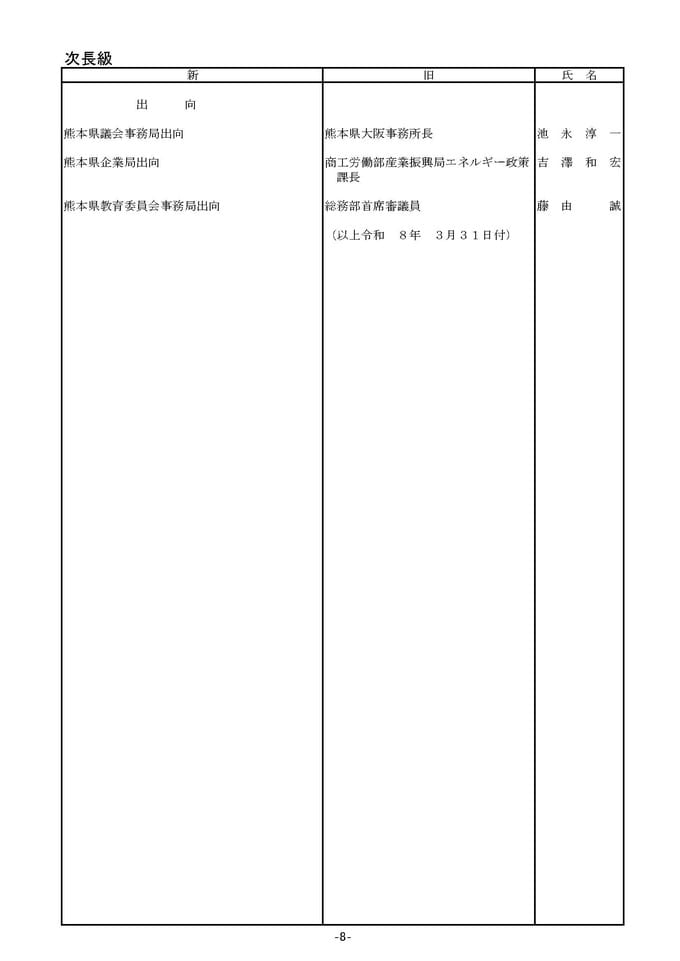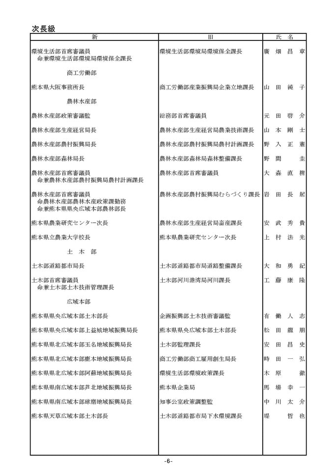 熊本県職員の人事異動一覧2026〈特別職・部長・次長・課長・課長補佐・係長級・年度末退職者【知事部局】〉