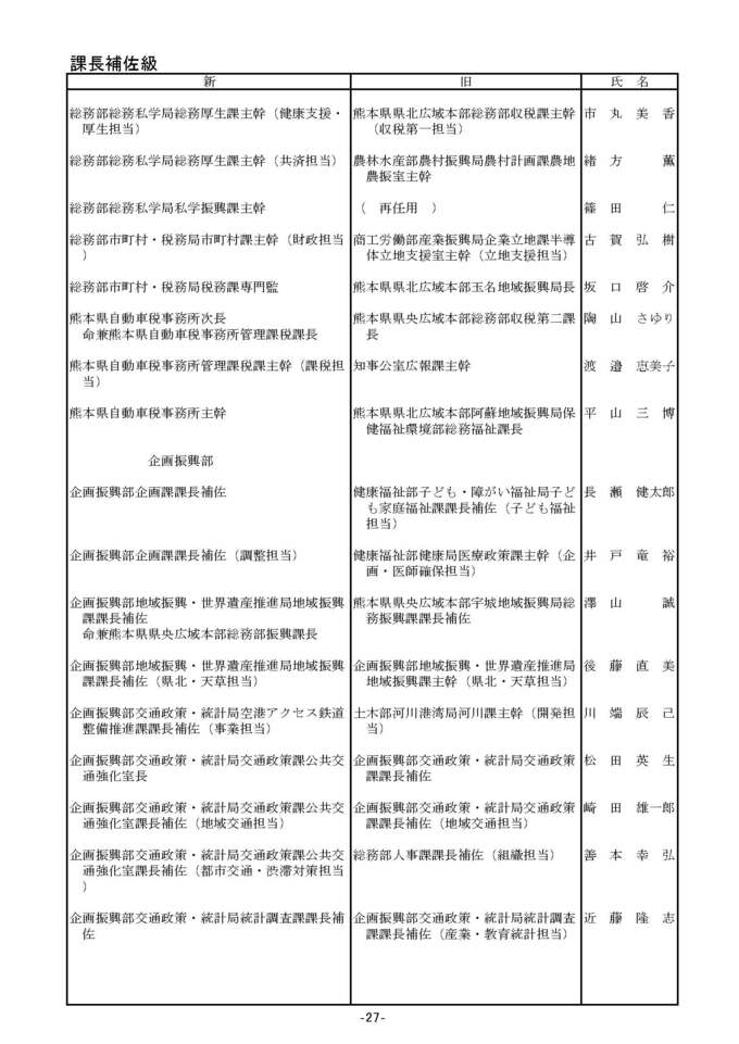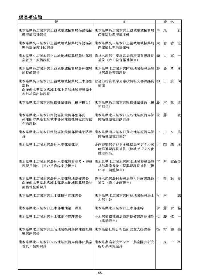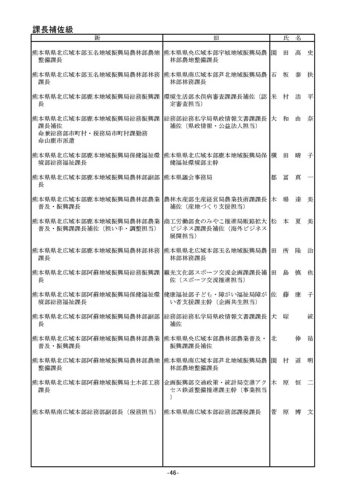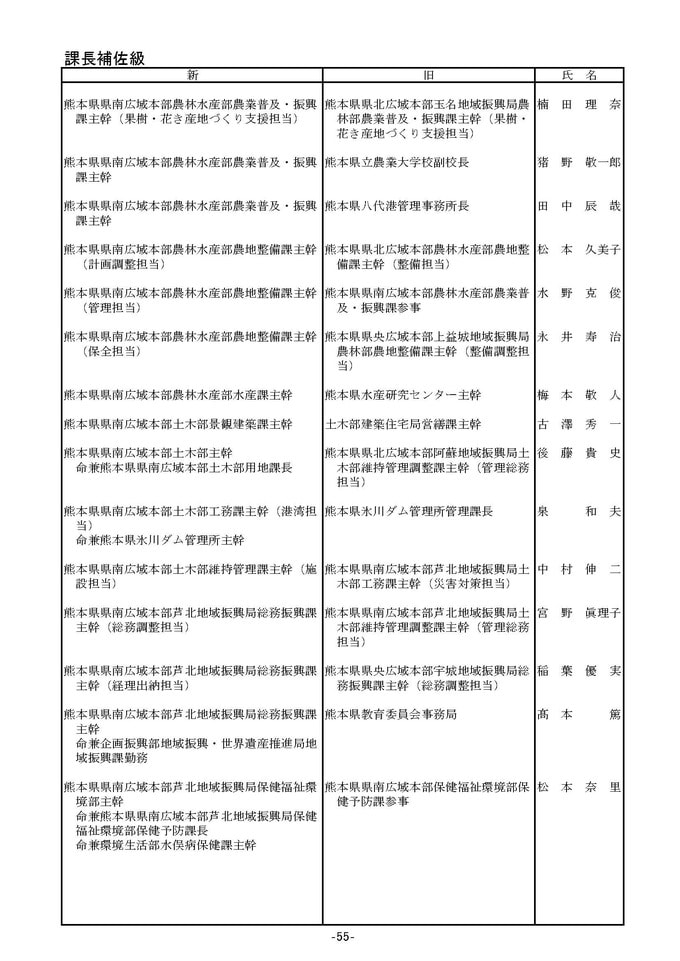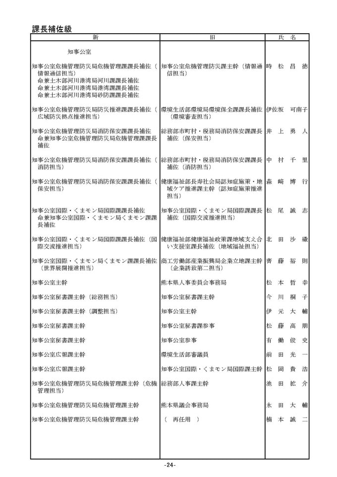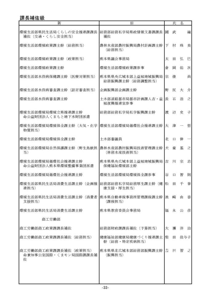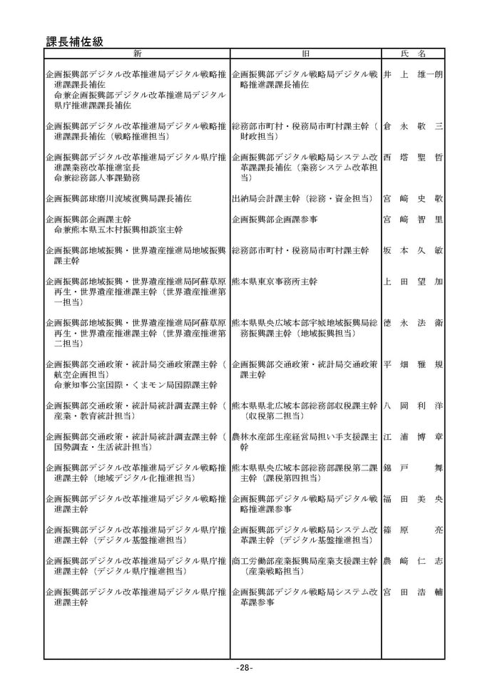 熊本県職員の人事異動一覧2026〈特別職・部長・次長・課長・課長補佐・係長級・年度末退職者【知事部局】〉