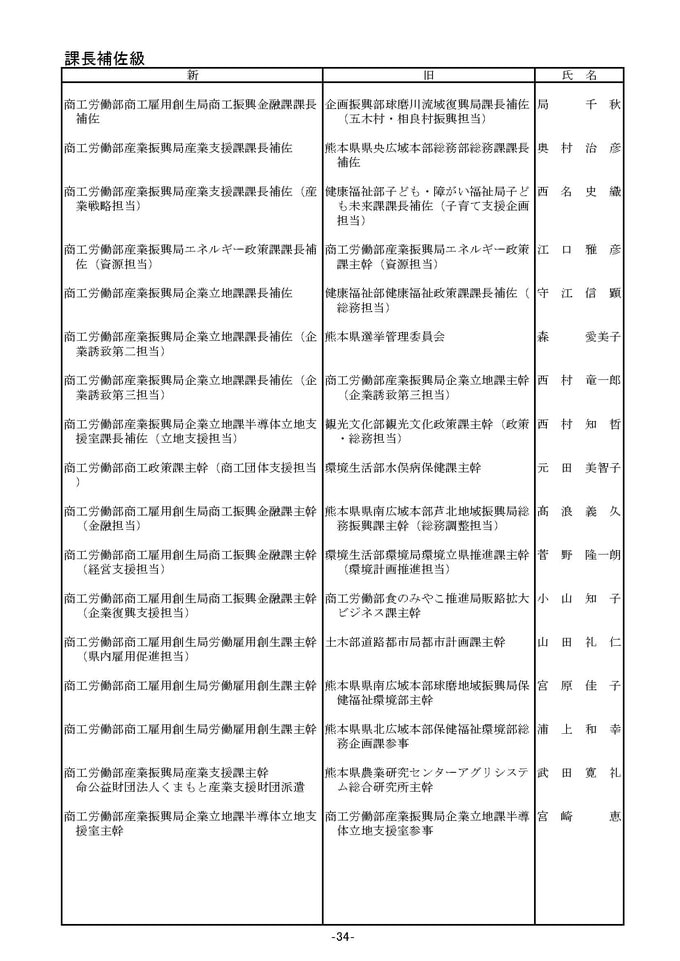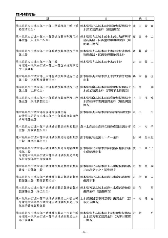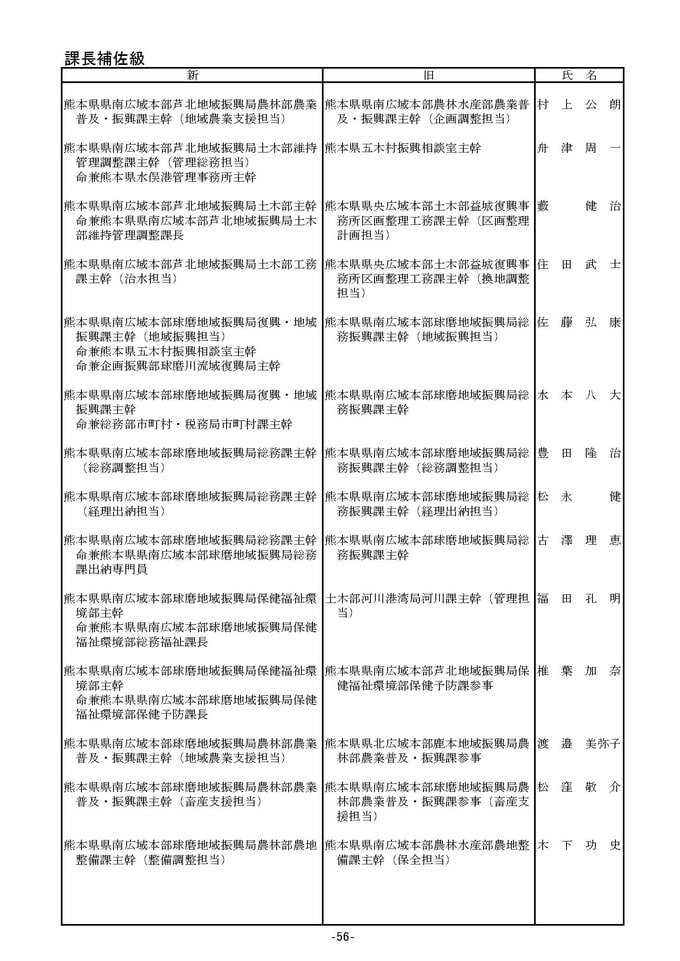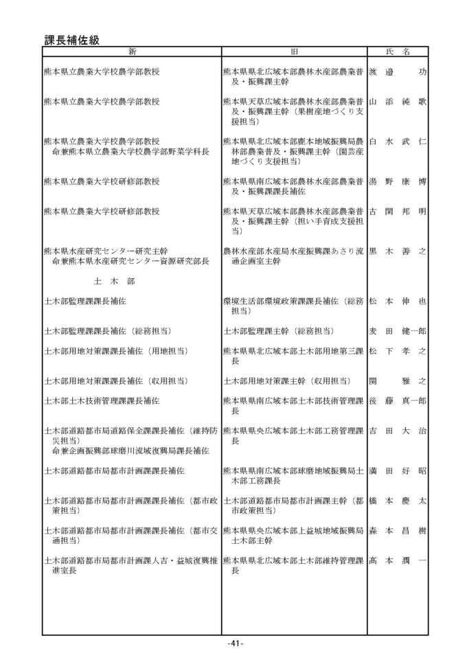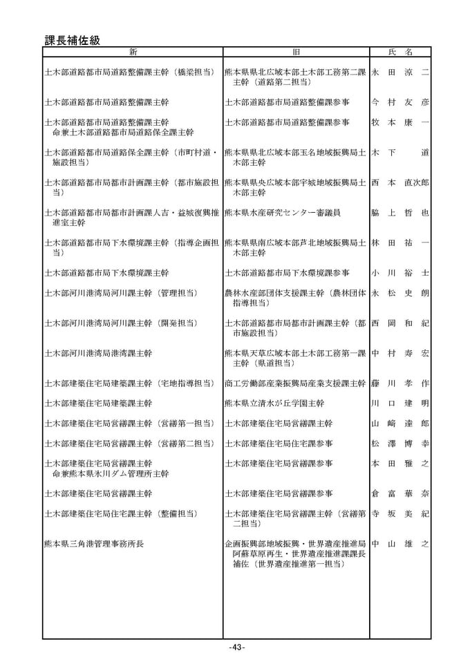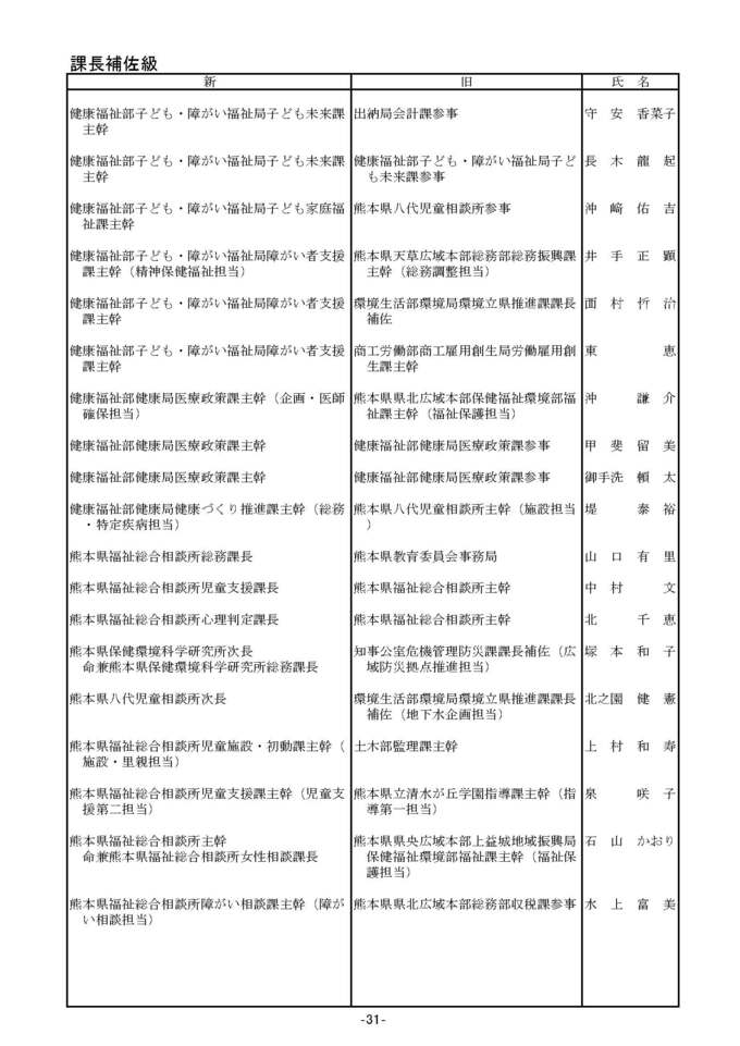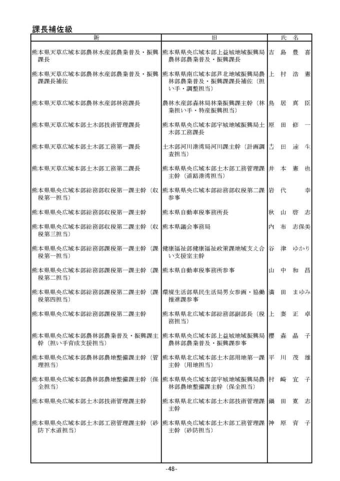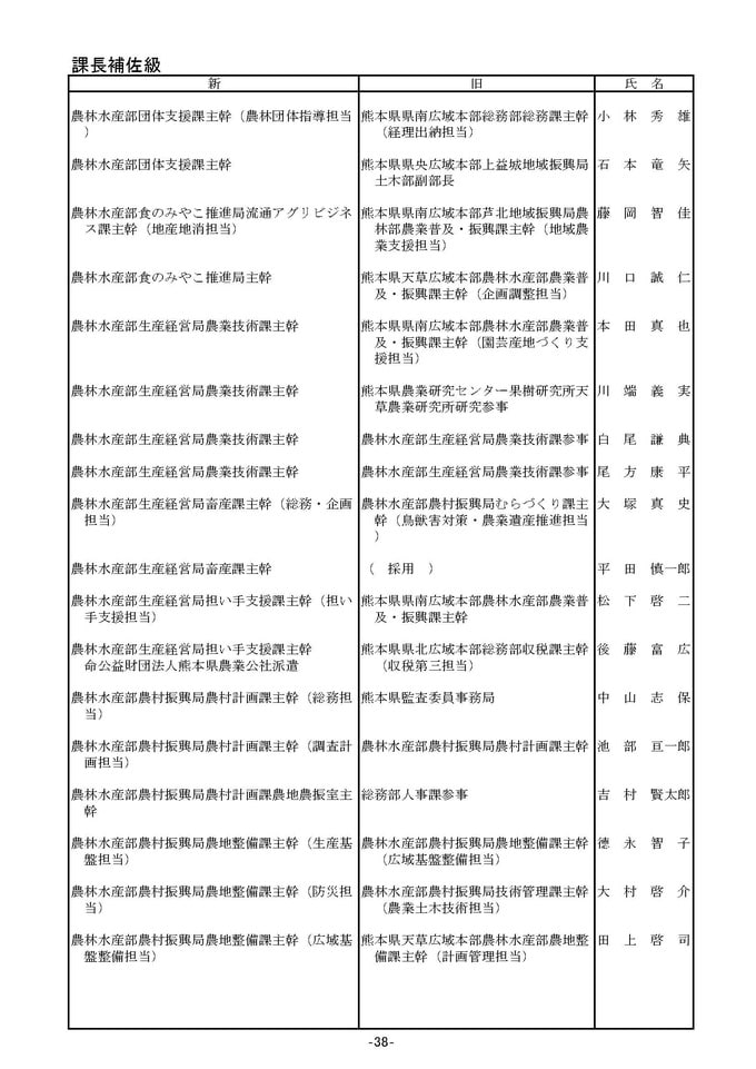 熊本県職員の人事異動一覧2026〈特別職・部長・次長・課長・課長補佐・係長級・年度末退職者【知事部局】〉