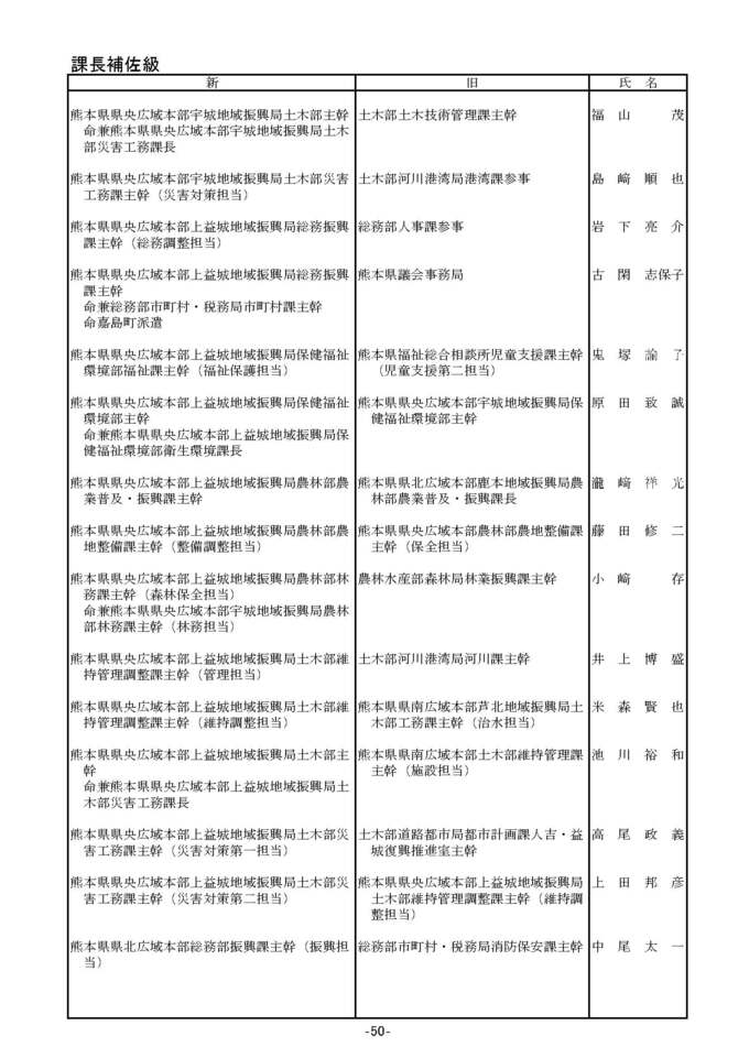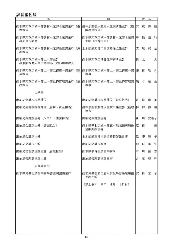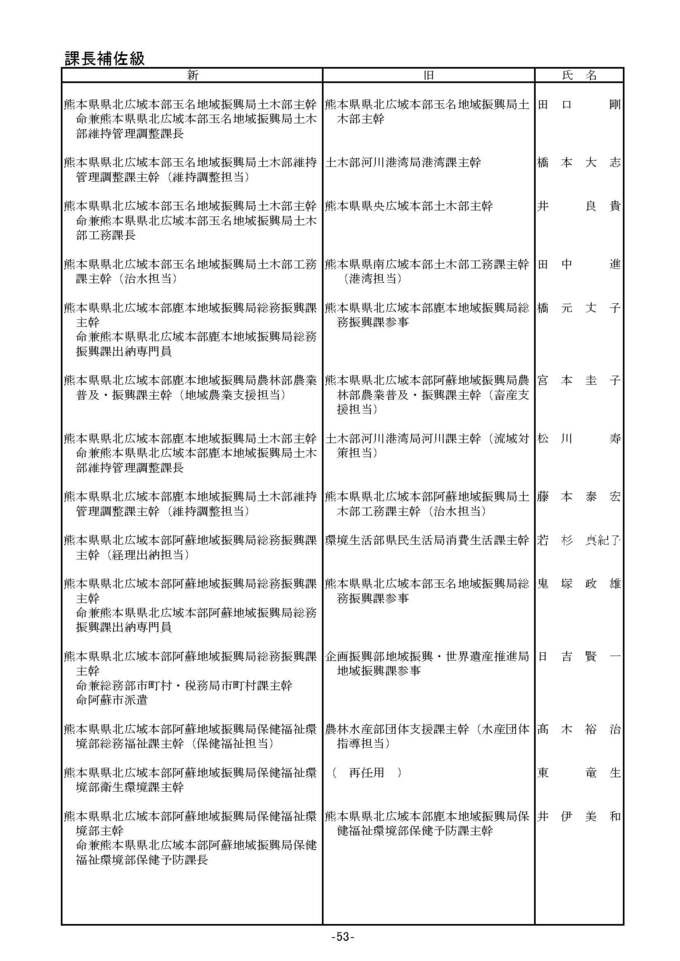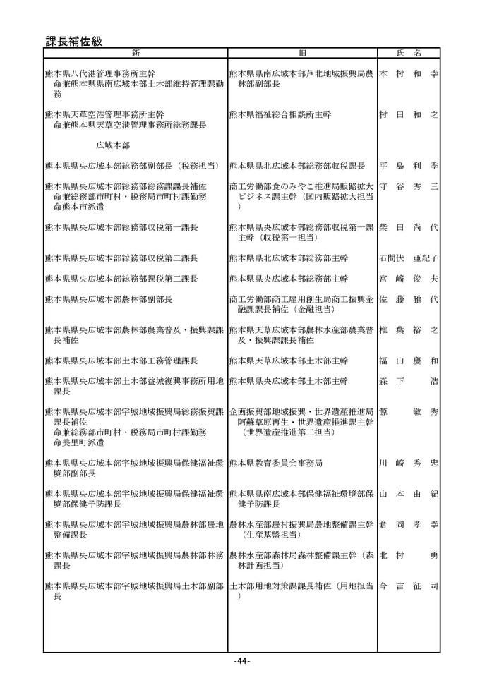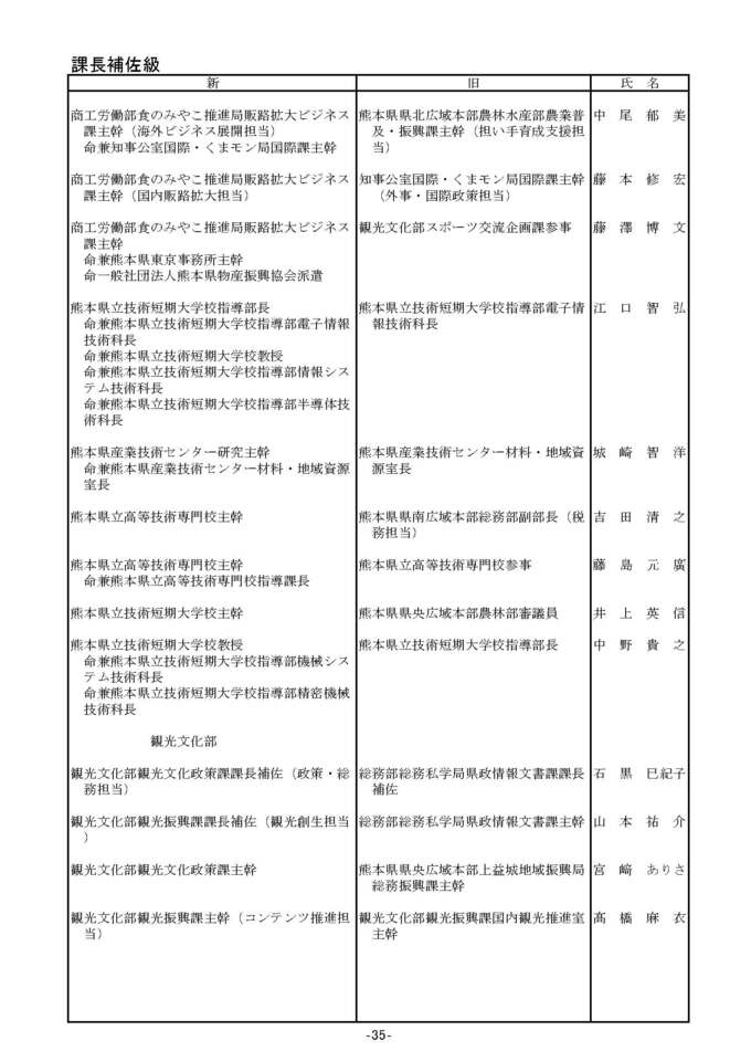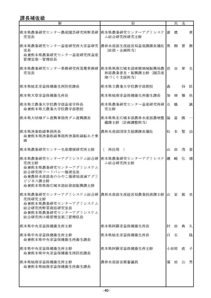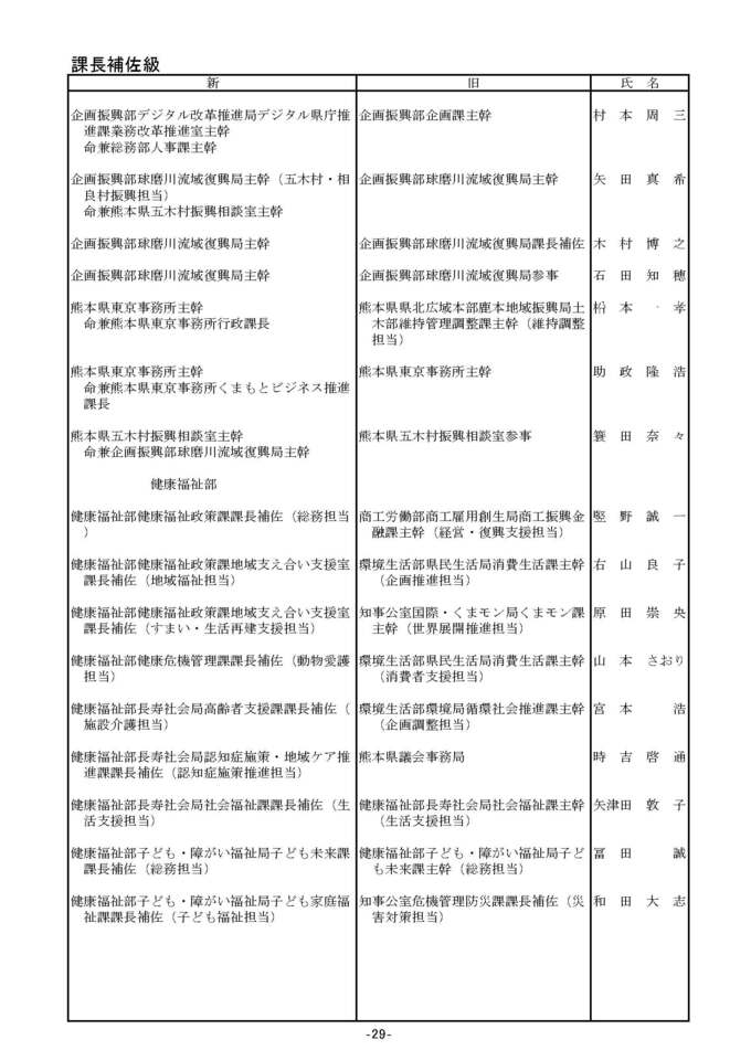 熊本県職員の人事異動一覧2026〈特別職・部長・次長・課長・課長補佐・係長級・年度末退職者【知事部局】〉