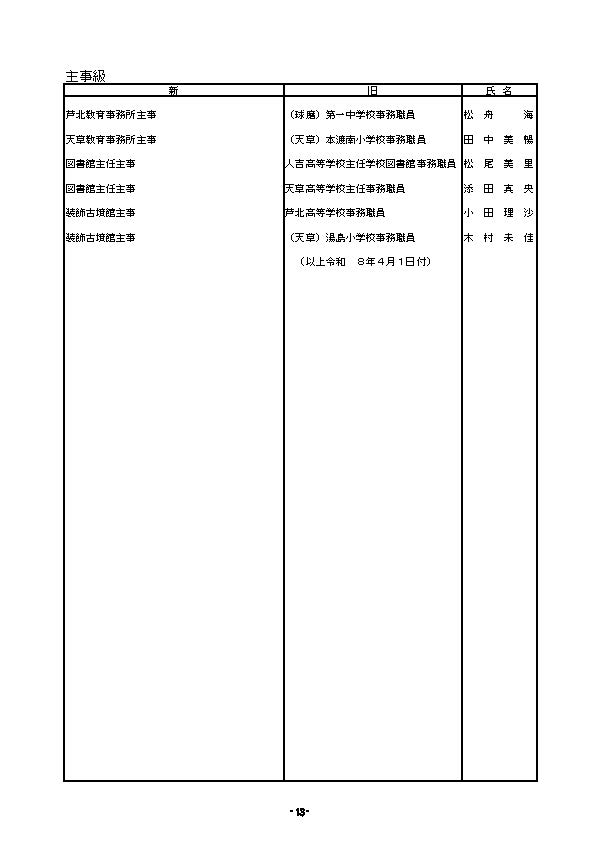あの先生どこ行くと?熊本県 教職員の人事異動一覧2026〈教育委員会事務局〉