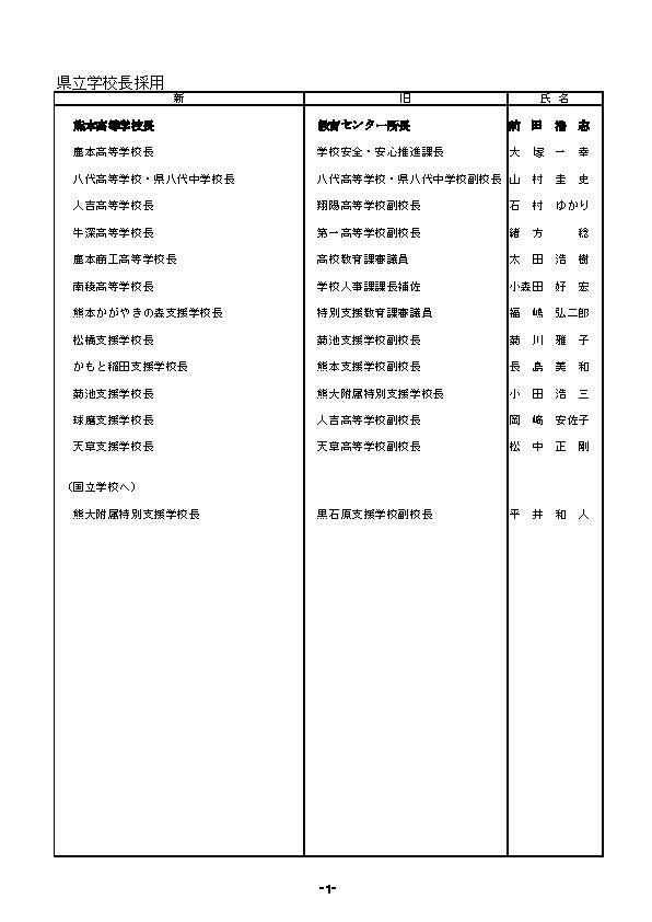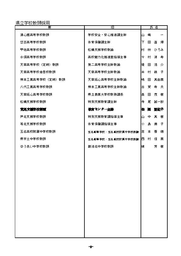 あの先生どこ行くと?熊本県 教職員の人事異動一覧2026〈県立学校〉