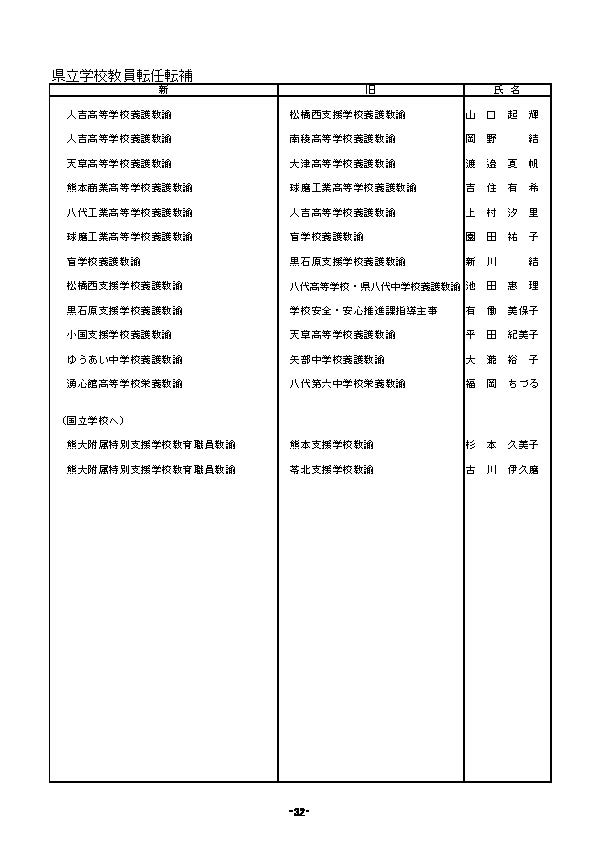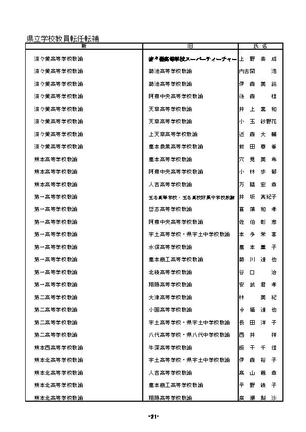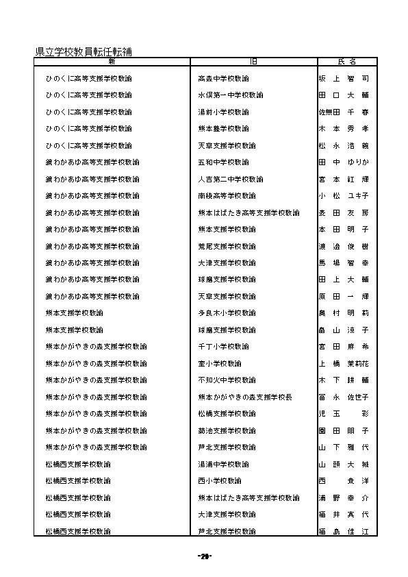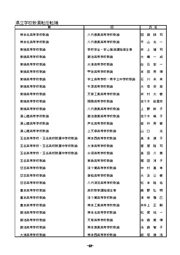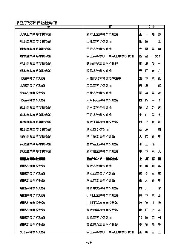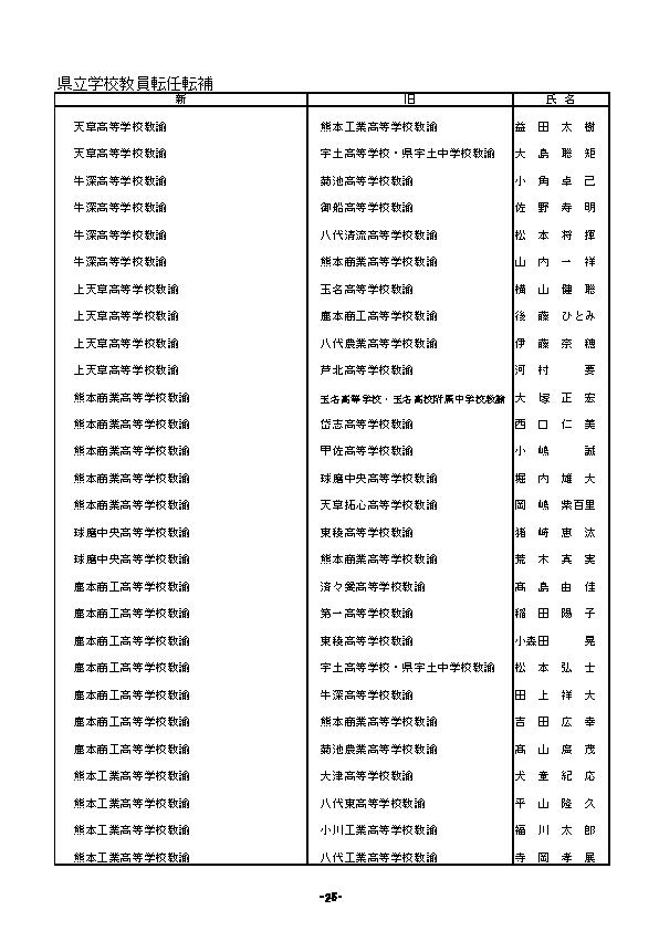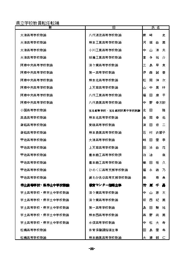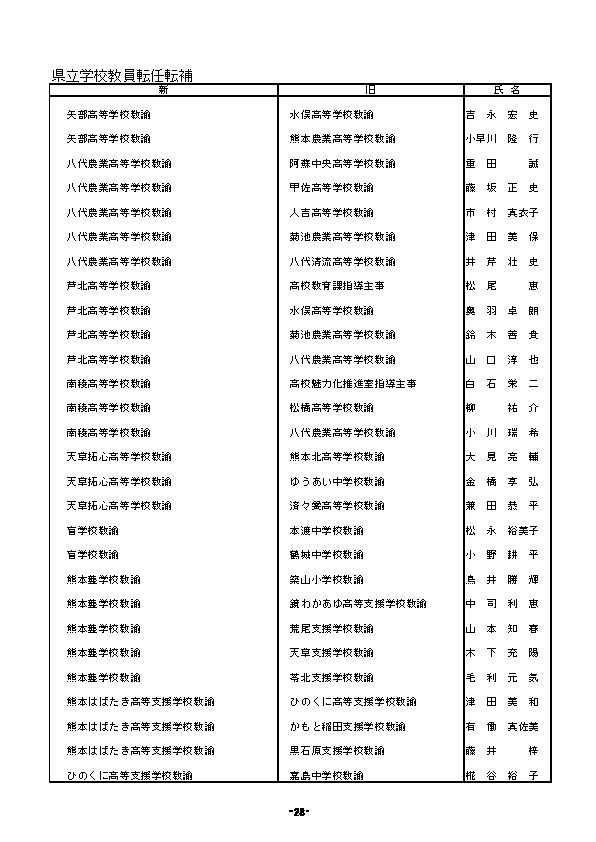 あの先生どこ行くと?熊本県 教職員の人事異動一覧2026〈県立学校〉