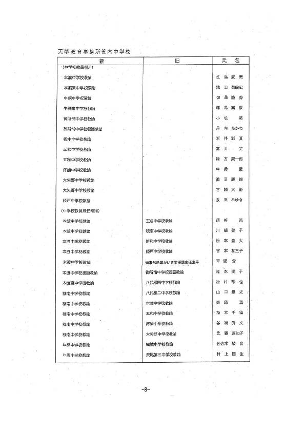 あの先生どこ行くと?熊本県 教職員の人事異動一覧2026〈芦北・天草【小学校・中学校】〉