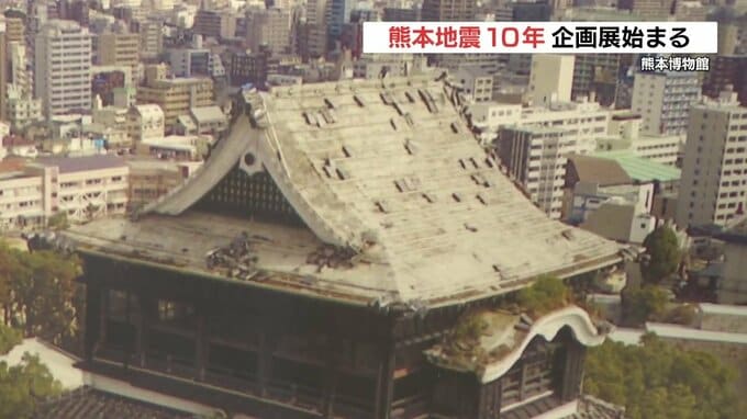瓦落ちた熊本城、ブルーシートに覆われた街 “ふかん”で読み取る熊本地震 写真約150枚のパネル展 熊本博物館 2026年3月25日(水) 12:12 国内 熊本地震から10年となる今年、熊本博物館で当時を振り返るパネル展が開催されています。熊本地震発生当時の被害状況を伝える、報道機関や警察、消防などが撮影した映像や写真約150枚が展示されています。写真の中…