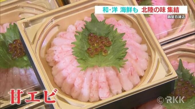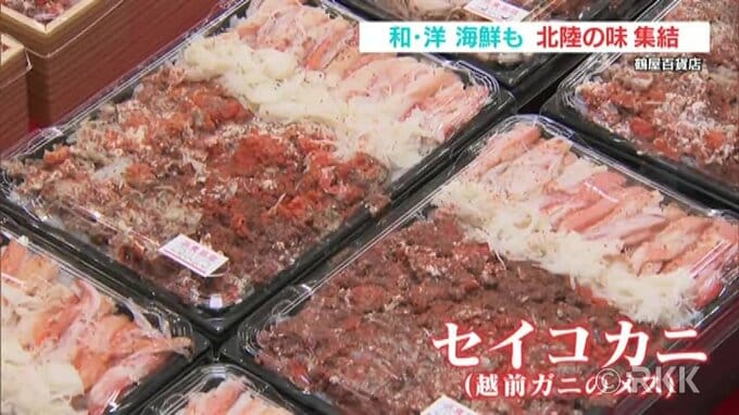 福井からは甘エビや越前ガニのメスにあたる「セイコカニ」など海の幸をぜいたくに使った弁当も並びます。