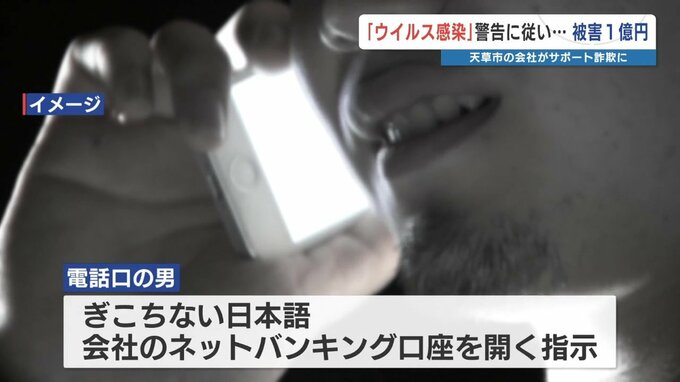 女性が「ウイルス感染」という警告文とともに表示された「0101」から始まる番号に電話をかけたところ、電話口に出た男がぎこちない日本語で、会社のネットバンキングの口座を開くよう指示してきたということです。