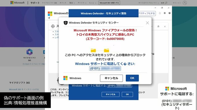 サポート詐欺の画面例