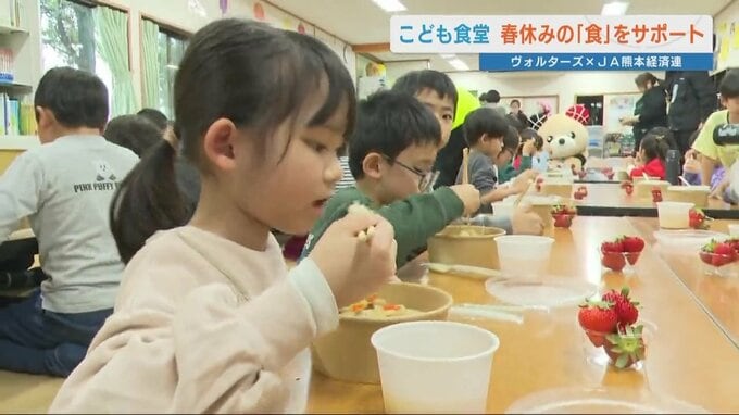 共働きなどで忙しい保護者の手助けになればと、熊本ヴォルターズとJA熊本経済連が、春休み初日の3月25日に実施しました。