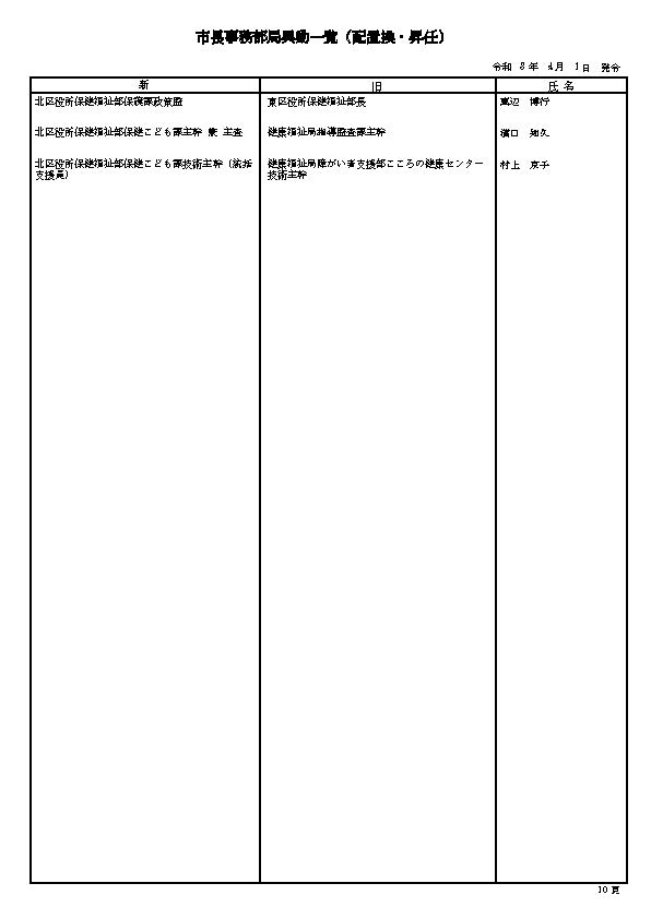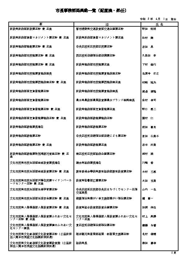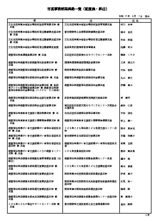 3. 熊本市の職員 人事異動情報2026 〈特別職・局長級~主任級〉〈病院局/消防局/議会局/交通局/上下水道局/教育委員会/監査事務局/人事委員会/選挙管理委員会/農業委員会〉名簿一覧
