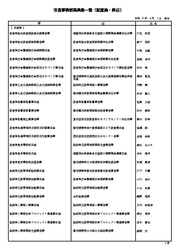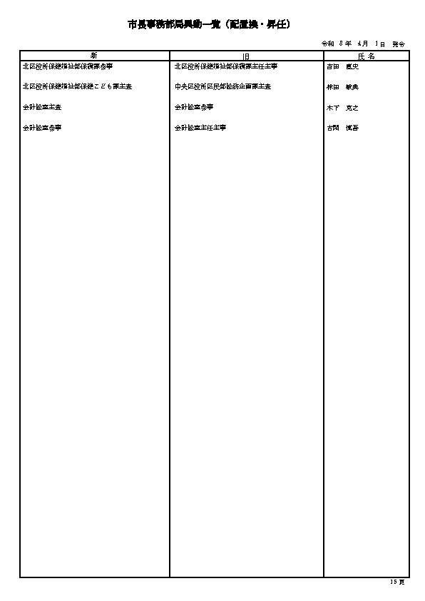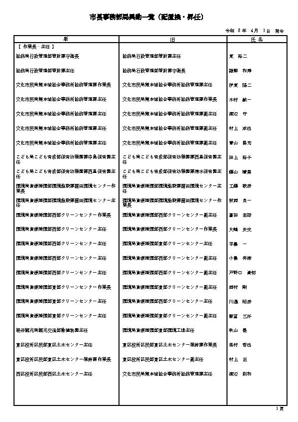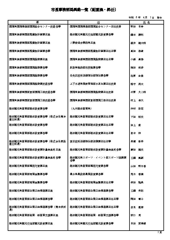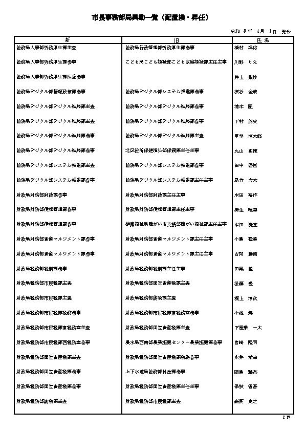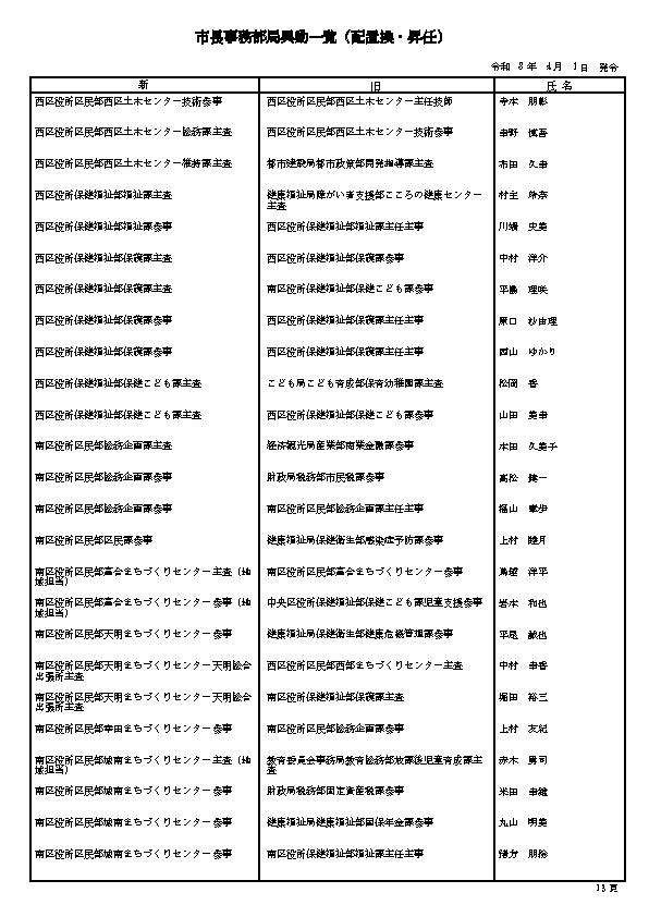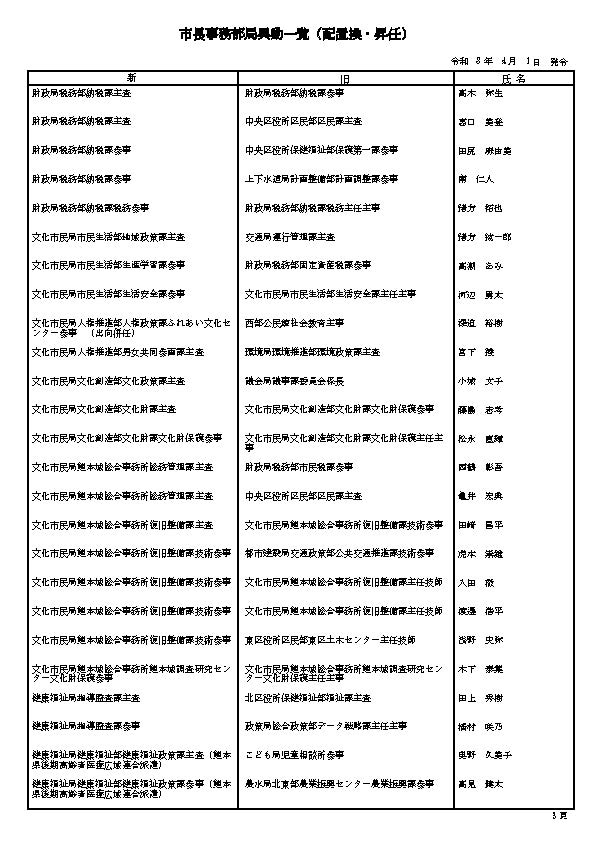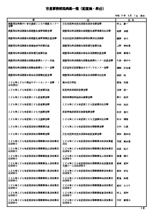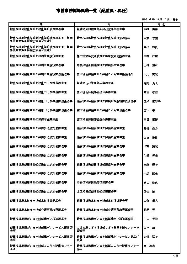 3. 熊本市の職員 人事異動情報2026 〈特別職・局長級~主任級〉〈病院局/消防局/議会局/交通局/上下水道局/教育委員会/監査事務局/人事委員会/選挙管理委員会/農業委員会〉名簿一覧