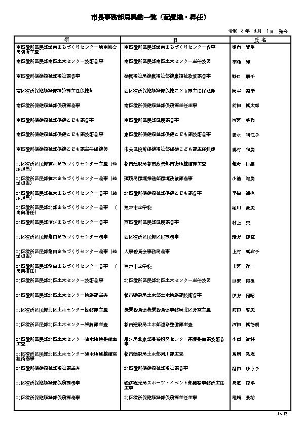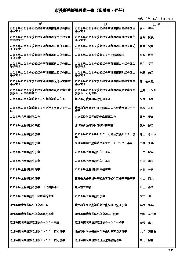 熊本市の職員 人事異動情報2026 〈特別職・局長級~主任級〉〈病院局/消防局/議会局/交通局/上下水道局/教育委員会/監査事務局/人事委員会/選挙管理委員会/農業委員会〉名簿一覧