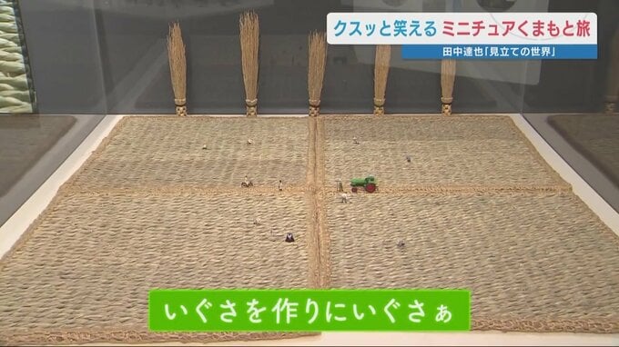 ミニチュア写真家・田中達也〝新聞紙の熊本城〟で故郷を思う クスッと笑えるミニチュアくまもと旅「見立ての世界」 2026年3月26日(木) 19:57 国内 作品名「いぐさを作りにいぐさぁ」 会場には実物も展示されています。 小さな世界を覗き込むことで、その工芸品の繊細さを再発見できるのも魅力です。