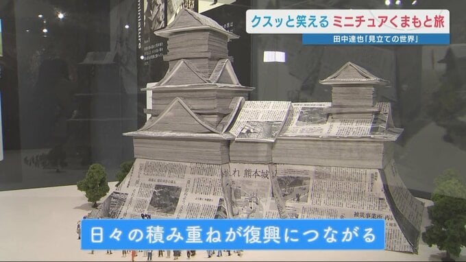 熊本市出身 ミニチュア写真家 田中達也さん「熊日新聞から復興に関する記事を取り寄せて、熊本城の石垣に関する部分があればその記事を石垣の部分に貼り付けた」