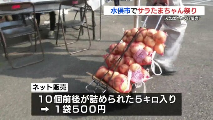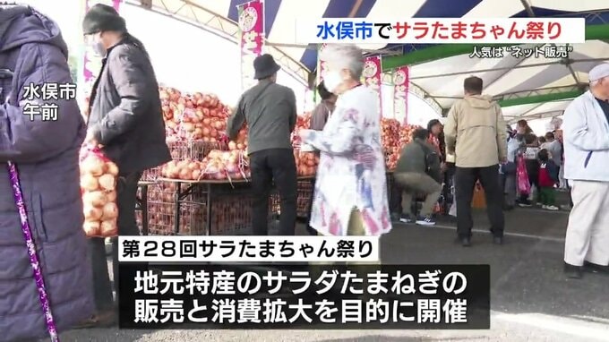 水俣市の特産サラダたまねぎの販売会が行われています。