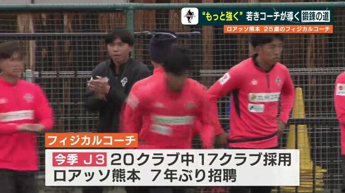 怪我を「治す」のではなく選手を「強くする」ことが役割のフィジカルコーチは、J3でも20クラブ中、17のクラブで採用されていますが、ロアッソでは7年ぶりです。