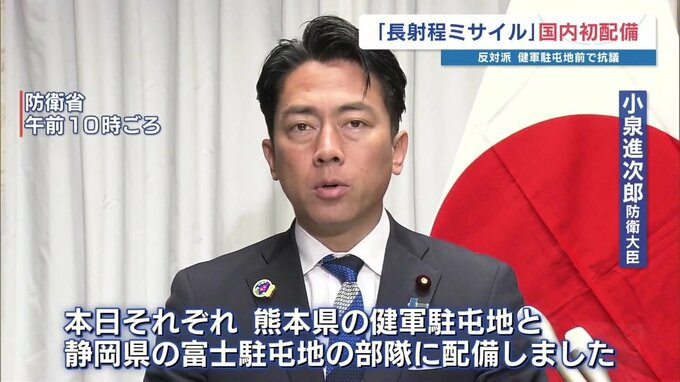 ‶12式〟改め‶25式〟長射程ミサイルを配備 防衛省「抑止力を高める」 市民団体「今日を怒りの出発点に」 2026年3月31日(火) 19:14 国内 熊本市の陸上自衛隊・健軍駐屯地に、今日(3月31日)反撃能力がある長射程ミサイルが、国内で初めて配備されました。小泉進次郎 防衛大臣「本日それぞれ、熊本の健軍駐屯地と静岡県の富士駐屯地の部隊に配備しまし…