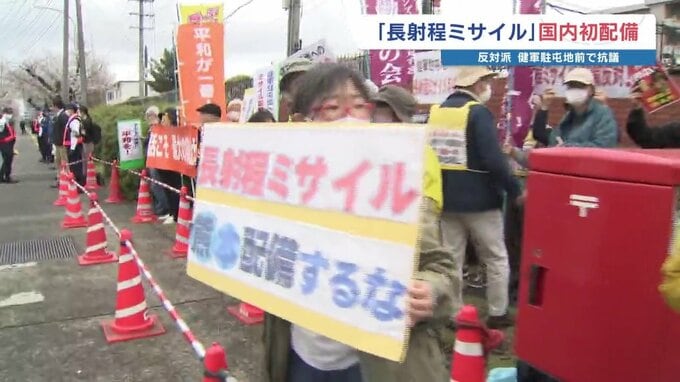 健軍駐屯地の前には、プラカードを掲げて配備反対の声を上げる市民の姿がありました。