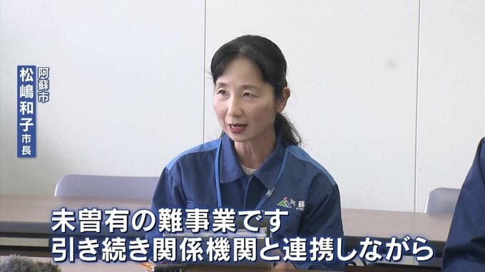 阿蘇市 松嶋和子 市長「未曽有の難事業です。引き続き関係機関と連携しながら、引き上げに向けて全力をあげる」