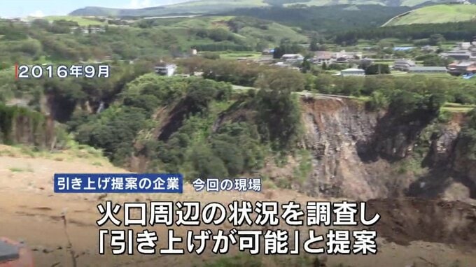 関係者によりますと、引き上げを提案した企業は、熊本地震の後に阿蘇大橋の崩落現場周辺で無人の重機を活用して復旧作業を進めた実績があり、今回も既に火口周辺の状況を調査した上で「引き上げが可能」として提案しています。