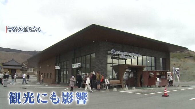 記者「平日にも関わらず、多くの観光客が訪れている阿蘇山上ターミナルです。火口へと続く有料道路は、4月20日の時点でも通行禁止です」