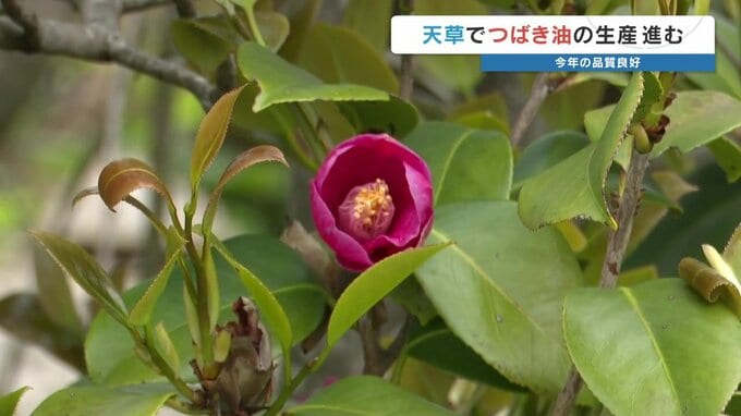 ヤブツバキからとれる天草椿油の生産が、熊本県天草市で行われています。