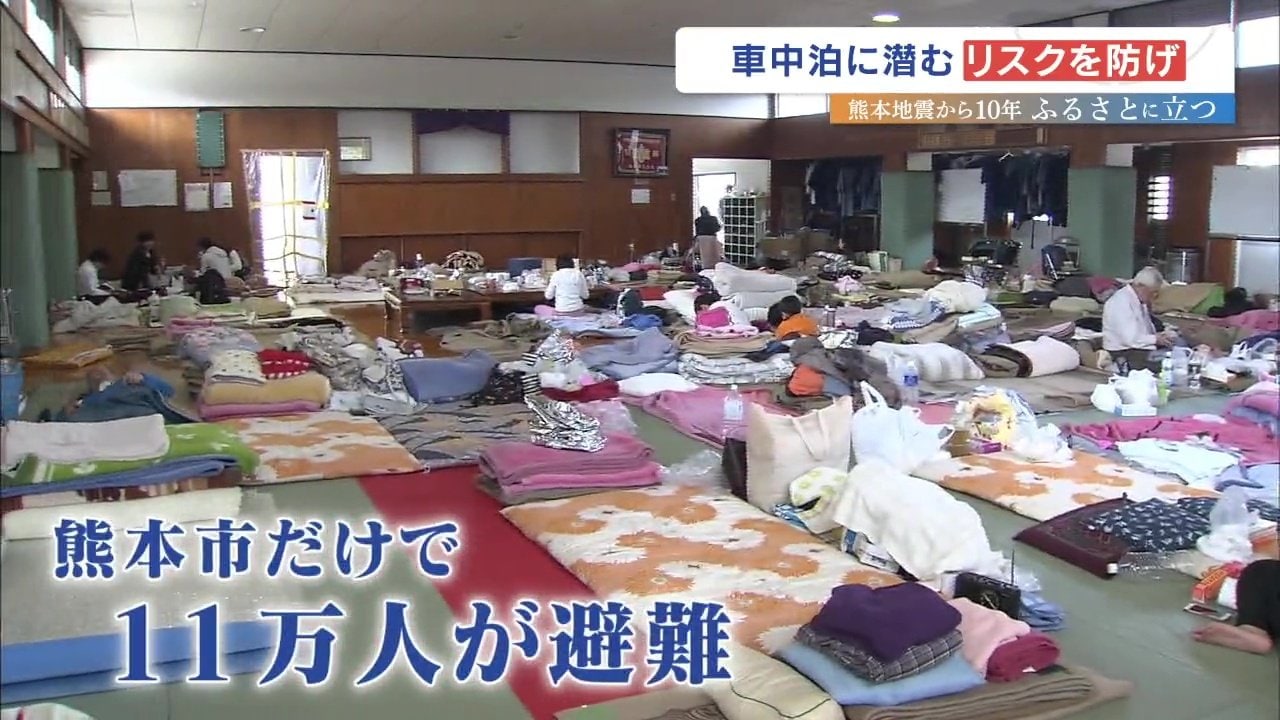 今月20日の三陸沖の地震でも同じ様子がありましたが、10年前の熊本地震では、多くの被災者が車中泊を余儀なくされました。