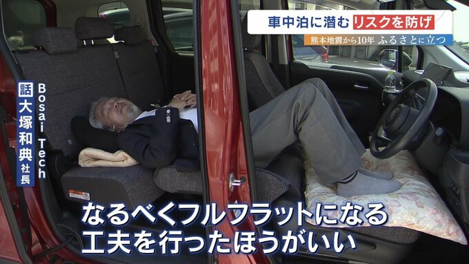 Bosai Tech 大塚和典社長「タオルを敷いたり、隙間があるところには段ボールなどを入れたり、なるべくフルフラット(平ら)になる工夫を行った方がいい」