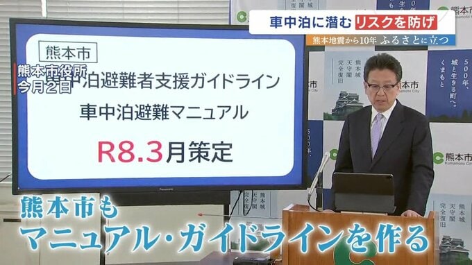 大規模災害の場合、車中泊避難が一定数発生する状況をふまえて、国も手引きを策定、熊本市も車中泊避難者支援のガイドラインを作りました。