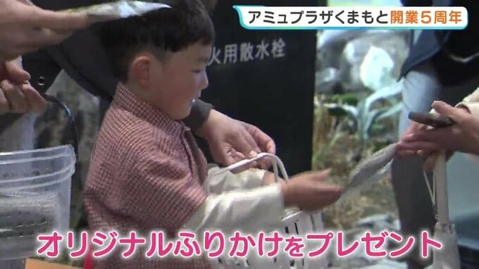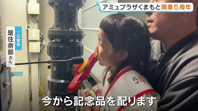 熊本市のアミュプラザくまもとが4月23日、開業5周年を迎え、セレモニーが開かれました。