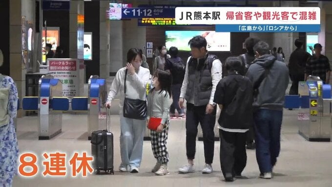 「つかまり立ちだった娘が…」孫の成長を手土産にゴールデンウィークの帰省 賑わう熊本駅 大型連休を楽しむ人たちの声 2026年4月29日(水) 19:01 国内 熊本駅は帰省客や観光客で朝から混雑しました。JR熊本駅には、ゴールデンウイークを利用して帰省する人の姿がありました。