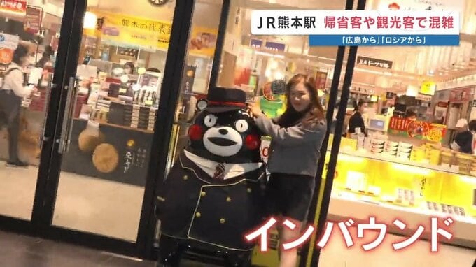 「つかまり立ちだった娘が…」孫の成長を手土産にゴールデンウィークの帰省 賑わう熊本駅 大型連休を楽しむ人たちの声 2026年4月29日(水) 19:01 国内 外国人観光客の姿も目立ちました。 外国人観光客「ロシア」「アメリカ」「ニューヨーク」「フィリピン」 熊本城や阿蘇方面を観光するということです。