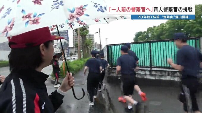 70年続く伝統行事 新人警察官が「駆け足登山訓練」に挑む 熊本 2026年4月30日(木) 19:26 国内 雨の中の険しい山道 教官「頑張って!いってらっしゃい」 雨の中、市街地を走り抜けること6キロ、残りは険しい山道です。走るのが苦手な仲間を班のメンバーで支えることも訓練の狙いです。