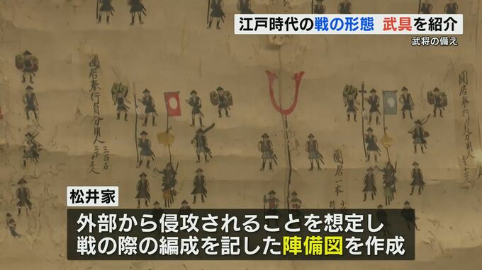 江戸時代の武家社会では、常に戦に備えた準備が整えられていたと言われています。松井家でも戦の際の編成を記した陣備図(じんぞなえず)と呼ばれるものを作っていて、外部から侵攻されることを想定し準備をしていたということです。