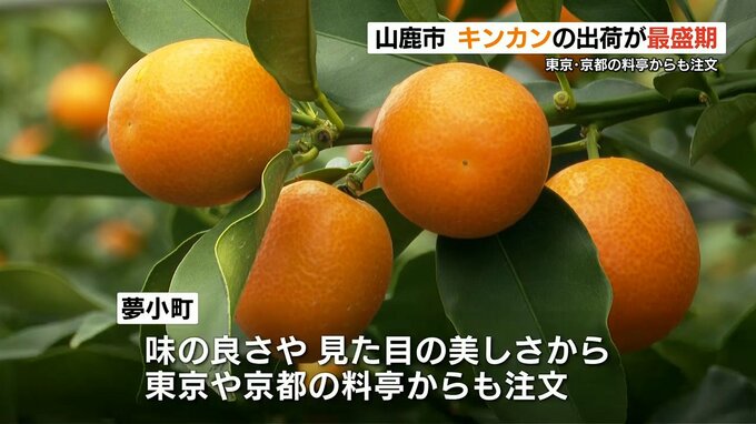 県内一の生産量を誇る山鹿地域では、このキンカンを「夢小町(ゆめこまち)」というブランド名で出荷していて、味の良さや見た目の美しさから東京や京都の料亭からも注文が入るということです。