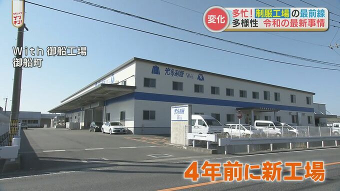 熊本県内にある小・中・高校の制服でシェア5割以上の光多(みつた)制服。4年前に新たな工場を御船町に建設しました。