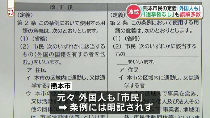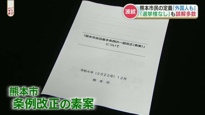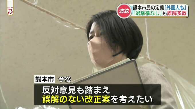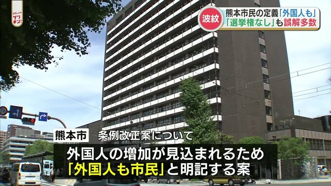 熊本市の条例で「市民」を定義する文言に「外国人も含める」と明記する案に対し、反対意見が相次ぎました。熊本市は「誤解に基いている意見だ」としています。