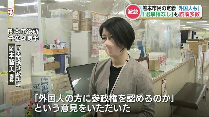 熊本市地域政策課 岡本 智美 課長「外国人の方に参政権を認めるのかという意見をいただいた」