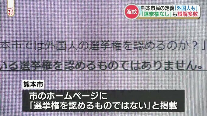 熊本市は反対意見には誤解に基づいた部分があるとし、1月5日に市のホームページに「外国人の選挙権を認めるものではない」という文言を掲載しています。