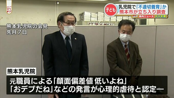 熊本乳児院を巡っては先月12月、元職員による「顔面偏差値低いよね」「おデブだね」などの発言が心理的虐待と認定され、去年2022年3月、市から改善勧告を受けていたことが明らかになっています。