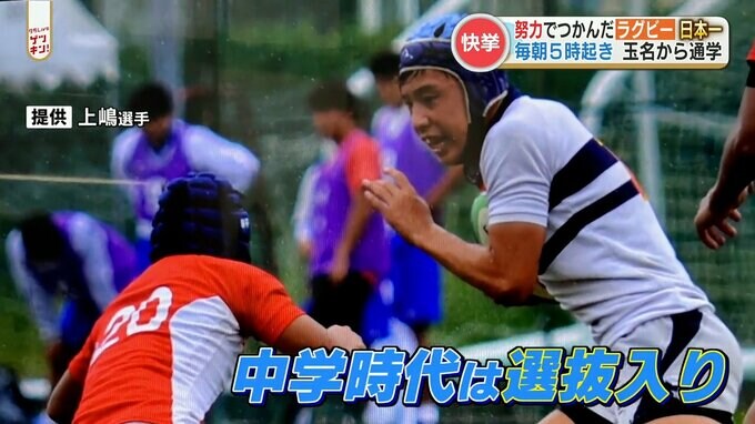 高校ラグビーで最高の結果を残した上嶋選手(大会最多8トライ)。